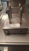 Nerezový čtyřtrnový ohřívač pečiva na přípravu hot-dogů nebo párků v rohlíku. Trny ohřívače mají průměr 25 mm, délku 190 mm a jsou vyrobeny z leštěného hliníku. Přístroj má režim rychlého ohřevu a energetický úsporný režim. Tento ohřívač rohlíků je ideální volba pro stánky s rychlým občerstvením nebo malá bistra.