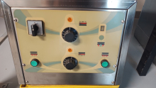 Technické parametry: model: PF 33 klonky: 100 až 270 g průměr nerezového plata: 330 mm napětí: 400 V, 50 Hz příkon: 3,6 kW hmotnost: 100 kg Konstrukční vlastnosti: rám je vyroben z nerezové oceli desky z nerezové oceli INOX 304 rychlé nastavení tloušťky elektronické ovládání času tlaku.