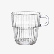 Tento hrnek v designu 70. let, vyrobený z tvrzeného a stohovatelného skla, zdůrazňuje lesk skla a zvýrazňuje jeho obsah.