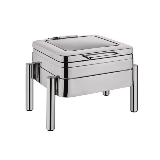 Vysoce leštěný chafing vyroben z nerezu 18/10. Speciální úprava vany a víka zajišťuje ochranu proti okapu zkondenzované vody na ubrus či stůl. Jednoduše stohovatelný pro úsporu místa při skladování